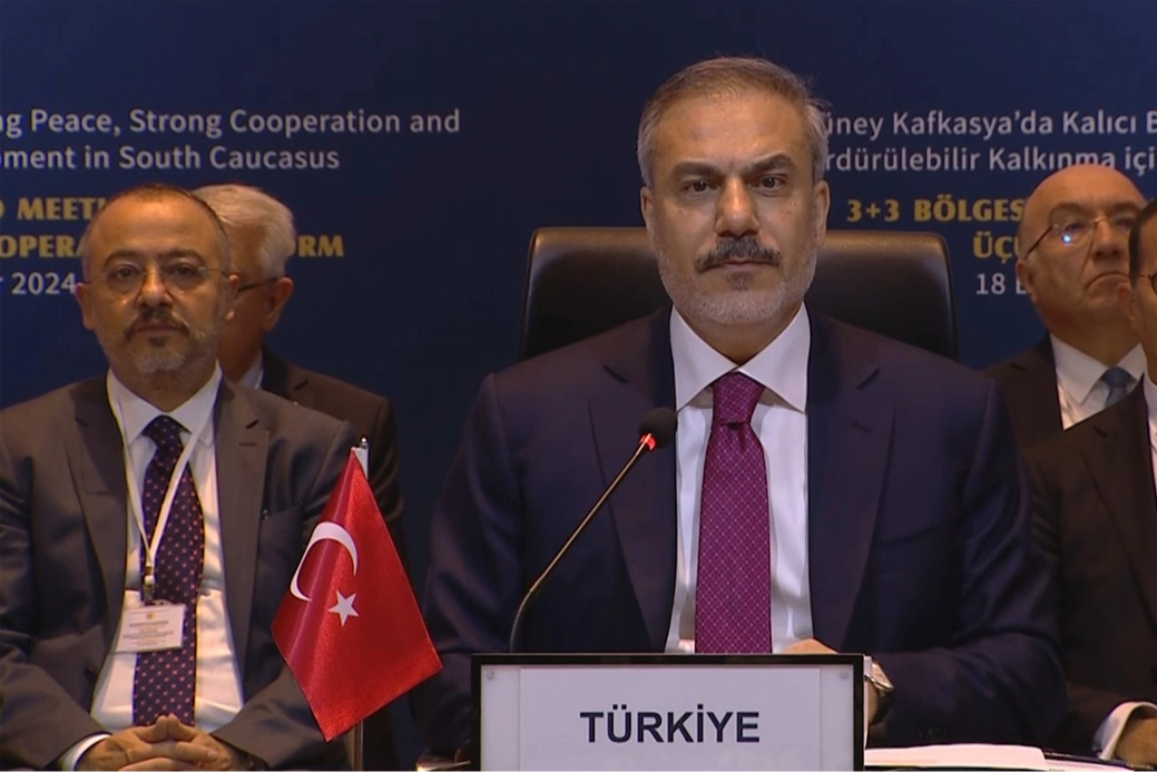 Dışişleri Bakanı Hakan Fidan konuşmasında, “Bugün, Güney Kafkasya’da kalıcı barışın temini ve işbirliği imkanlarının değerlendirilmesi amacına matuf bir istişare zemini olan 3+3 Bölgesel İşbirliği Platformu’nun 3’üncü toplantısı için bir araya gelmiş durumdayız. Azerbaycan, Ermenistan, İran ve Rusya Dışişleri bakanlarına ve heyetlerine İstanbul’a hoş geldiniz diyorum. Kısaca 3+3 Platformu olarak tanımladığımız bu mekanizmanın oluşturulması fikri, 2. Karabağ Savaşı’nda ateşkesi sağlayan 9 Kasım 2020 tarihli 3’lü bildirisinin imzalanmasını izleyen haftalarda ortaya çıktı. Temel hedefi Güney Kafkasya’yı yakından ilgilendiren tüm konuların ele alınacağı bir zemine duyulan ihtiyaca cevap vermektedir. Platformun adının 3+3 olmasına rağmen salonda maalesef bir katılımcımız eksik. Yakın komşumuz ve dostumuz Gürcistan’ın yerinin baki olduğunu ve arzu ettiği zaman bu platforma dahil olabileceğini sizlerin önünde bir kez daha ifade etmek isterim. Yakın coğrafyamızda yaşadığımız çalkantılı süreçler, savaşlar, Ortadoğu’da İsrail’in insani felaket ve zulüm sarmalı, bölgesel düzeyde diyalog ve işbirliğinin ne kadar önem arz ettiğini bir kez daha ortaya koyuyor. Güney Kafkasya’ya bakışımızın temelinde de bölgesel sahiplenme anlayışımız bulunmakta. Bölgesel sorunları en iyi, o bölgenin devletlerinin bildiğine ve onların çözebileceğine inanıyoruz. Nitekim bu vizyonumuzun tezahürü olarak toplantımızın ana neticelerine dair bir ortak bildiriyi de görüşmelerimizin sonunda kabul etmeyi öngörüyoruz” dedi.