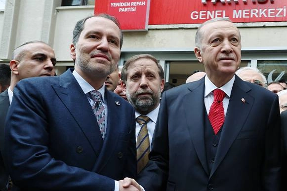 Cumhurbaşkanı ve AKP Genel Başkanı Recep Tayyip Erdoğan, Cumhur İttifakı'na katılan Yeniden Refah Partisi’nin merkez binasında Yeniden Refah Partisi Genel Başkanı Fatih Erbakan ile bir araya geldi. Yaklaşık 50 dakika süren görüşmenin ardından Erbakan açıklama yaptı. Tüm seçim bölgelerinde kendi adayları ve kendi logosu ile gireceklerini söyleyen Erbakan, "Bakanlık, Cumhurbaşkanlığı yardımcılığı gibi bir talebimiz olmadı" dedi.