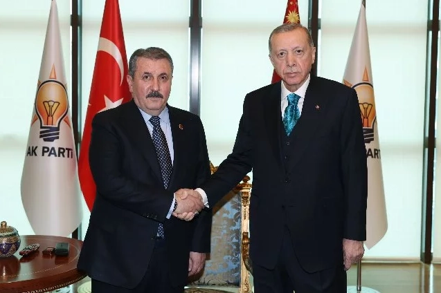 Cumhurbaşkanı ve AK Parti Genel Başkanı Recep Tayyip Erdoğan, AK Parti Genel Merkezi'nde Büyük Birlik Partisi (BBP) Genel Başkanı Mustafa Destici ile bir araya geldi. Görüşme sonrası açıklama yapan Destici, "81 ilde kendi logo ve adaylarımızla seçime katılacağız" dedi.