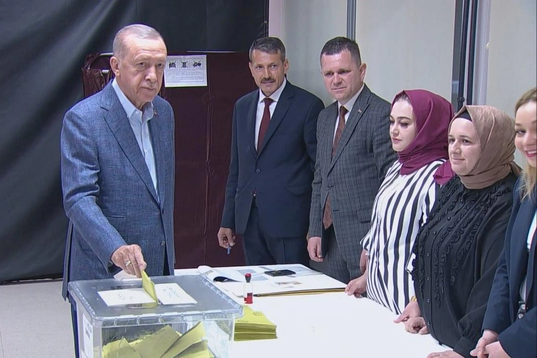 Erdoğan, Üsküdar Kısıklı'daki oy kullanacağı Saffet Çebi İlkokulu'na geldi. Vatandaşlar Erdoğan'ı tezahüratlarla karşıladı. Cumhurbaşkanı Erdoğan'ı okulda AK Parti İstanbul İl Başkanı Osman Nuri Kabaktepe karşıladı. Kabinde oy verme işlemini gerçekleştiren Erdoğan, ardından zarfı sandığa atarak imza attı.