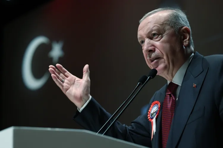 Türkiye'nin savunma sanayiinde geldiği noktadan da söz eden Cumhurbaşkanı Erdoğan, "İHA'larımızla, SİHA'larımızla, son teknoloji ürünü kara, hava, deniz ve haberleşme araçlarımızla bugünün savaş konseptini de yine biz belirliyoruz. Diğer taraftan, iç cephemizi de tahkim ediyor, birliğimizi, dirliğimizi, kavlimizi güçlendirmek için tarihi nitelikte adımlar atıyoruz. Bu adımlarla ‘Terörsüz Türkiye’ ve ‘terörsüz bölge’ hedeflerimize doğru kararlı, ümitli ve dikkatli bir şekilde ilerliyoruz. Bu menzile vardığımızda, inşallah çok daha güçlü, çok daha müessir, çok daha muteber bir Türkiye'yi hep birlikte hayata geçirmiş olacağız. Mevlana Celaleddin-i Rumi, bakınız ne diyor; ‘Söz, tir-endaz'ın, yani okçunun çektiği oka benzer.’ Tüm dünya bilsin ki bizim birlik ve kardeşliğimiz de gerilmiş bir yay gibidir. Bu yaydan çıkan her ok, milletimizin bekasına kasteden düşman her kimse ona yönelmiştir. Okun er ya da geç, hedefi tam isabetle vuracağına, kirli kuşatmaları yarıp geçeceğine, Allah'ın izniyle emperyalist planları yırtıp atacağına biz tüm kalbimizle inanıyoruz, bundan hiçbir şüphe duymuyoruz. Buradan milletimizle birlikte, yüzünü Türkiye'ye çevirmiş tüm dost, kardeş ve soydaşlarımıza sesleniyorum. Gazze ve Suriye başta olmak üzere, bölgemizdeki kardeşlerimizin yaşadığı ağır imtihanlar kimseyi endişeye sevk etmesin. Coğrafyamızı kana, katliama, vahşete ve gözyaşına boğmak isteyenlerin pervasızlıkları kimseyi karamsarlığa sürüklemesin. Bin yıldır yaşadığımız bu topraklarda biz nice imtihanlarla karşılaştık. Nice badireler atlattık. Nice musibetlere göğüs gerdik. İçeriden ve dışarıdan nice ihanete muhatap olduk. Ama hepsinin de üstesinden gelmeyi hamdolsun, başardık. Zümrüdü Anka gibi her seferinde küllerinden yeniden doğduk. Zalimler karşısında diz çökmedik. Müstevliler karşısında boyun eğmedik. Zorbalar karşısında teslim olmadık. Can verdik, canımızdan aziz bildiklerimizi kara toprağa verdik. Fakat istiklal ve istikbal sevdamızdan asla taviz vermedik. Bize ömür biçenler oldu. Bize kefen biçenler oldu. ‘Hasta adam’ dediler, ‘bu sefer tamam’ dediler, ‘Türkler yok olacak, esir olacak’ dediler, her defasında Türk’ün sarsılmaz imanına ve çelikten iradesine çarptılar. Her defasında Türk milletinin mücadele azmi, sabrı, cesareti karşısında kaybettiler. Bize ömür biçenlerin çoğu tarih oldu. Çoğu unutulup gitti. Şimdi onları kimse hatırlamıyor. Ama Türk milleti olarak biz, hamdolsun dimdik ayaktayız, tarih yazmaya devam ediyoruz" diye konuştu.