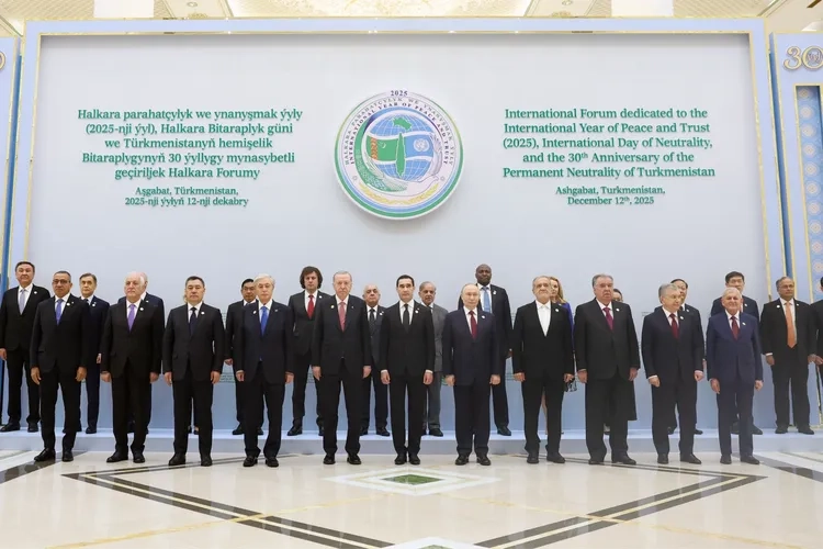 Cumhurbaşkanı Recep Tayyip Erdoğan, Uluslararası Barış ve Güven Forumu'na katılmak üzere geldiği Aşkabat’ta forum öncesi Türkmenistan Cumhurbaşkanı Serdar Berdimuhamedov tarafından karşılanmasının ardından aile fotoğrafı çekimine katıldı. Cumhurbaşkanı Recep Tayyip Erdoğan, Uluslararası Barış ve Güven Forumu'na katılmak üzere geldiği dün akşam saatlerinde geldiği Türkmenistan'ın başkenti Aşkabat'ta temaslarına başladı. Cumhurbaşkanı Erdoğan, davetli devlet ve hükûmet başkanlarıyla birlikte Tarafsızlık Anıtı'na çelenk koyma törenine katıldı. Cumhurbaşkanı Erdoğan, çelenk koyma töreninin ardından "Uluslararası Barış ve Güven Forumu öncesinde, forumun yapıldığı Türkmenistan Maslahatlar Merkezi'ne geçti. Burada Türkmenistan Devlet Başkanı Serdar Berdimuhamedov tarafından karşılanan Cumhurbaşkanı Erdoğan, Berdimuhamedov ile tokalaşarak fotoğraf çektirdi. Karşılama töreninin ardından aile fotoğrafı çekimine geçildi. Aile fotoğrafı çekiminde Cumhurbaşkanı Erdoğan’ın sağında Kazakistan Cumhurbaşkanı Kasım Cömert Tokayev ve solunda ise Türkmenistan Devlet Başkanı Serdar Berdimuhamedov yer aldı. Cumhurbaşkanı Erdoğan bugünkü Türkmenistan temasları kapsamında ikili görüşmelerde bulunacak. Uluslararası forum katılımcılarının onuruna verilecek yemeğe katılacak.