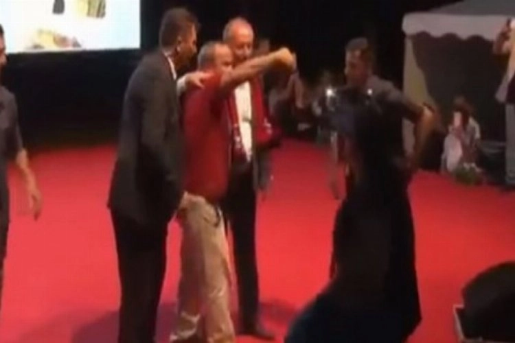Muharrem İnce'nin İzmir'de yaptığı konuşma sırasında bir vatandaş sahneye çıkmıştı. Vatandaşla selfie çektiren İnce diğer tarafa döndüğü anda korumalar vatandaşı sahneden savurup aşağı atmıştı.