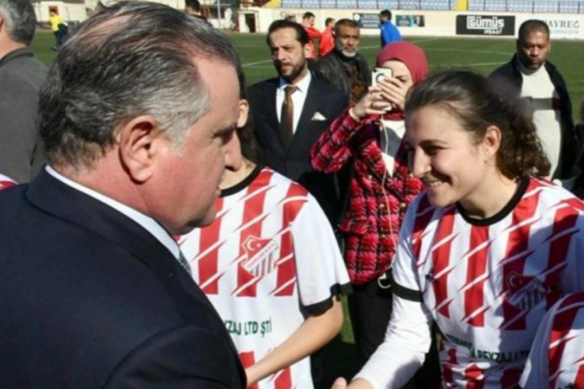 Çorlu 1947 kulübünün atkısı ve takım forması hediye edilen Bak, kız futbol takımı oyuncuları ile hatıra fotoğrafı çektirip, ilçeden ayrıldı.
