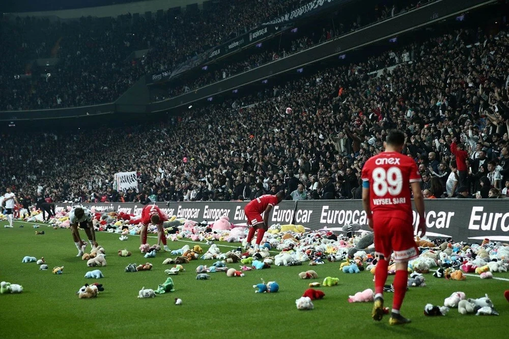 Beşiktaş taraftarlarının dün oynanan Antalyaspor karşılaşmasında, maçın 4:17’nci dakikasında sahaya peluş oyuncaklar atması, dünyanın gündemine oturdu.