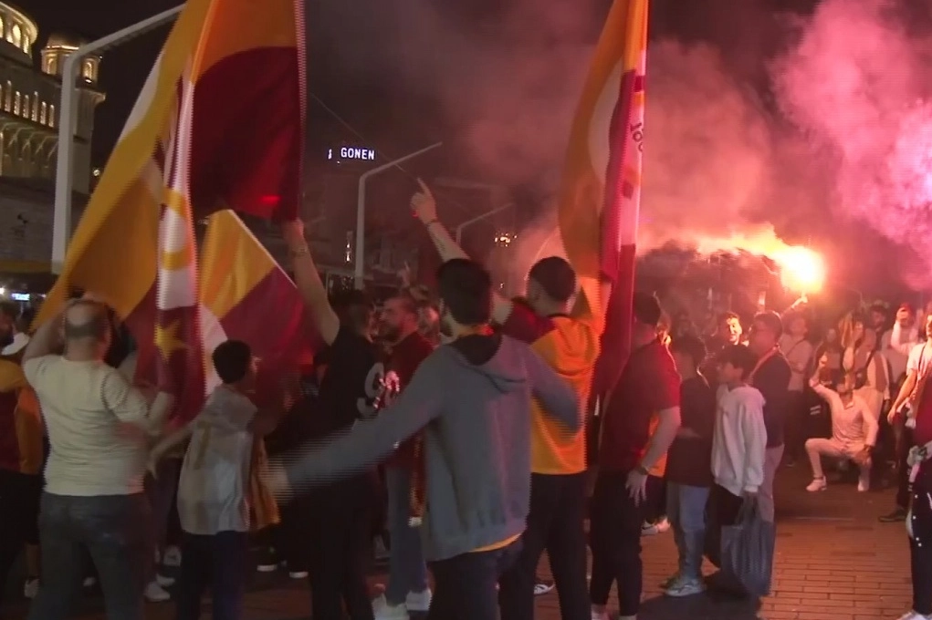 Maçın bitimiyle birlikte sarı-kırmızılı taraftarlar Taksim Meydanı'na akın etti. Taraftarlar şampiyonluğu büyük coşkuyla kutladı.