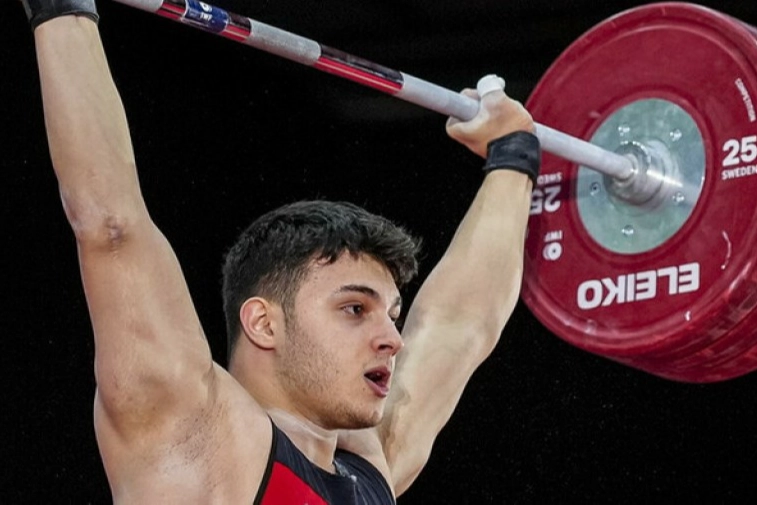 Türkiye Halter Federasyonu Başkanı Talat Ünlü, müsebakalar sonrası milli sporcuya madalyasını takdim etti.