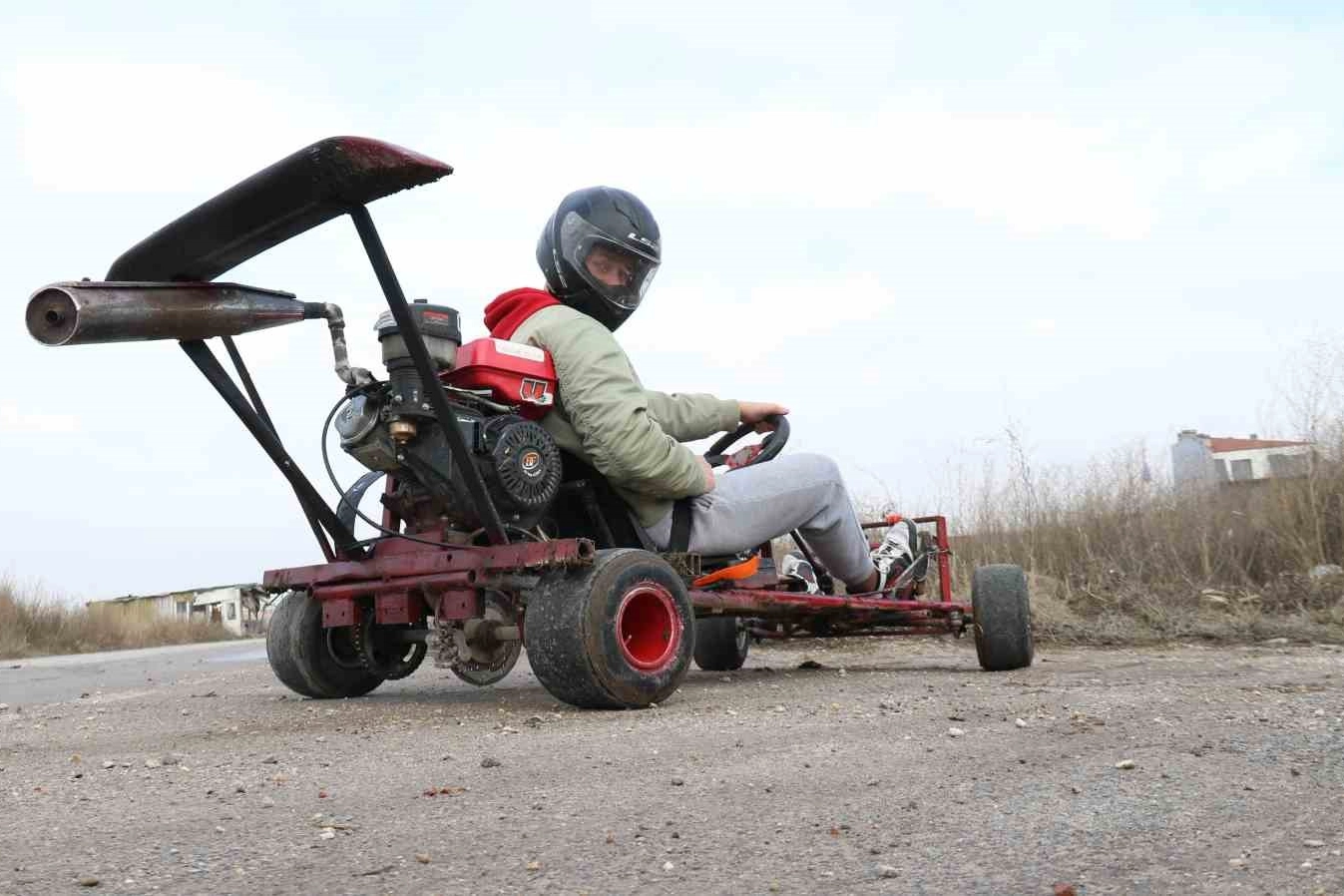 Tepebaşı Mahallesi Sazova Mahallesi’nde yaşayan 17 aşındaki meslek lisesi öğrencisi Alp Kuzey Özsoy, otomobillere ve araç motorlarına ilgi duyuyor. Uzun zamandır araç yapmayı ve onu kullanmayı hayal eden Özsoy, meslek lisesinden öğrendikleri ve internetten araştırmaları sonucunda bir go kart aracı yapamaya karar verdi. Hurda malzemelerden kaynak yaparak oluşturduğu şasi üzerin 420 cc 15 beygir gücünde ve saatte 100 kilometre hız yapabilen çapa motorunu sabitleyen Özsoy, hayalini kurduğu araç için sipariş ettiği özel lastikler ve direksiyonu taktıktan sonra deneme sürüşüne çıktı. Test sürüşünden sonra eksiklikleri araç tamamlandı.