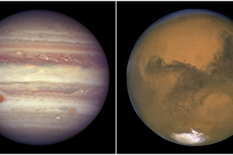 Euronews'te yer alan habere göre; Gerçekte, güneş sistemimizin en büyük gezegeni ve onun daha sönük, kırmızımsı komşusu kendi yörüngelerinde 575 milyon kilometreden daha uzaktalar. İki gezegenin arasındaki mesafe, çarşamba günü Amerika, Avrupa ve Afrika'nın büyük bölümünde gündüz saatlerinde (1 derecenin üçte biri ya da Ay'ın genişliğinin yaklaşık üçte biri) kısalacak.