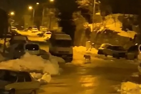 Adıyaman’ın Çelikhan ilçesinde etkili olan kar yağışı sonrası, ilçe merkezine kurt indi.