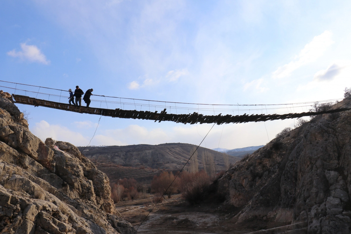 Malatya'nın Akçadağ ilçesine bağlı Levent Mahallesi'nde, bölgede arazisi bulunan Halil Doğan tarafından 1970'li yıllarda çelik halat üzerine yapılan 30 metre uzunluğunda ve yüksekliğindeki tahta köprü, yapımının üzerinden 50 yıldan fazla zaman geçmesine rağmen aile yakınları tarafından hala kullanılıyor.