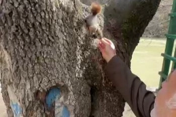 Doğa Koruma ve Milli Parklar Tunceli Şubesi’nde görevli Murat Özer, yaban hayatı kontrol çalışması çerçevesinde gittiği Munzur Vadisi Milli Parkı’nda denk geldiği yabani sincabı elleriyle besledi. Sincabın doğa koruma görevlisinin elinden mısır yediği anlar, bir başka çalışan tarafından kamerayla kayıt altına alındı.