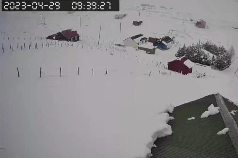 Sıcaklık değişimi ile birlikte sahil kesimlerinde yaşanan yağmur yağışı yüksek kesimlerde yerini kar yağışına bırakırken, Trabzon, Rize, Giresun ve Artvin’in bin 500 metre rakımın üzerindeki yaylalarında kar yağışı görüldü. Trabzon’un Düzköy ilçesine bağlı bin 880 rakımdaki Honefter Yaylası da bu kar yağışından nasibini aldı. Dün akşam saatlerinde yemyeşil olan yayla gece yağan karın ardından sabah beyaz örtüyle kaplandı. Kar kalınlığının 30 cm’yi bulduğu yaylada dün ve bugünün manzarası güvenlik kamerasına yansıdı.
