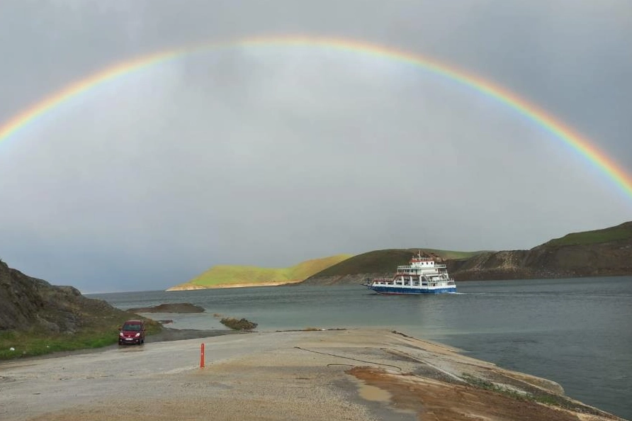 Meteorolojinin önceden uyardığı yağışlı hava bölgede olduğu gibi Çemişgezek ilçesinde de etkili oldu. Etkili olan yağmur sonrası gökyüzünde çifte gökkuşağı oluştu. Çemişgezek-Elazığ arası ulaşımı sağlayan feribotu adeta çifte gökkuşağı halkası sardı. Feribot sanki gökkuşağı halkasından geçiyormuş gibi çekilen fotoğraflar sosyal medyada ilgi gördü. Çifte Gökkuşağını cep telefonuyla kaydeden Erhan Yılmaz, "Elazığ yönünden gelirken Çemişgezek feribot iskelesinde gördüğümüz gökkuşağı adeta feribotla bütünleşmişti. Bu renk cümbüşü bizleri mest etti. Cep telefonumuzla bu anı ölümsüzleştirmek istedik" dedi.