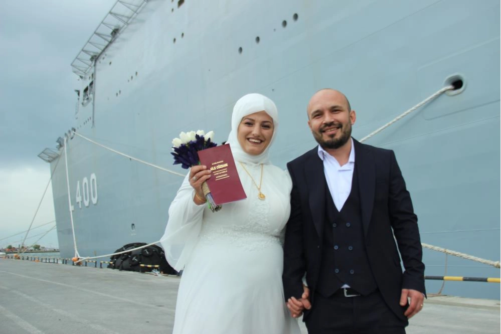 İzmir'de yaşayan çiçeği burnunda çift, nikah merasiminin hemen ardından TCG Anadolu'yu görmek için İzmir Alsancak Limanı'na geldi. Geminin İzmir'de bulunması nedeniyle fotoğraf çekimini TCG Anadolu'da yapacaklarını belirten çift, gelinlik ve damatlıkla TCG Anadolu'yu ziyaret etti. İzmir'de yaşayan Kamil Tekmen ve Ebru Karaca Tekmen çifti, gerçekleşen nikah merasimlerinin hemen ardından soluğu TCG Anadolu gemisinin demirlediği İzmir Alsancak Limanı'nda aldı. Gemiyi merak ettiklerinden dolayı nikahın hemen ardından gelinlik ve damatlıklarıyla rıhtıma gelen çiçeği burnunda çift, renkli görüntülere sahne oldu. Nikah sonrası İnciraltı Sahili'nde gerçekleştirecekleri fotoğraf çekimlerini de gemide gerçekleştiren Kamil Tekmen ve Ebru Karaca Tekmen çifti, kendileri için unutulmaz bir anı yaşadıklarını dile getirdiler.