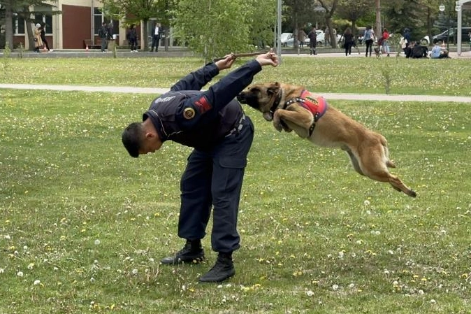 Eskişehir İl Jandarma Komutanlığı Asayiş köpeği Atak ve Akan, İKAF’23 etkinlikleri çerçevesinde Anadolu Üniversitesi’nde düzenlenen etkinlikte hünerlerini sergiledi. İletişim Fakültesi bahçesinde eğitmeniyle birlikte koreografi sergileyen Atak, uyguladığı eğitim komutları, taktik becerileri ve tükenmeyen enerjisi ile başta öğrenciler olmak üzere izleyenlerin beğenisini topladı. Yaklaşık 3 yıldır Cezaevi Tabur Komutanlığı’nda personellere yardımcı olan Atak asayiş köpeği olarak yetiştirilirken, spor müsabakaları, cezaevi güvenliği, toplumsal olaylar ve rehine kurtarma gibi birçok görevde yer alıyor. Binlerce kişinin katıldığı İKAF’23’te öğrencilerin yoğun ilgisiyle karşılaşan Atak, adeta etkinliğin gözdesi oldu. Görev aldığı 3 yıl boyunca jandarma personelinin en büyük yardımcılarından olan Atak, yaptığı takla ve atlama şovlarıyla büyük beğeni topladı.
