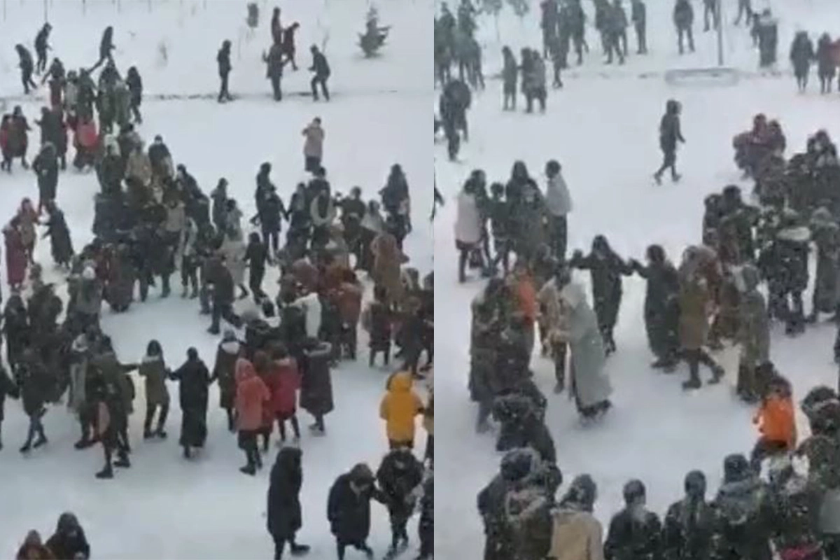 Beyaz karlarla kaplanan okul bahçesine inen kimi öğrenciler müzik eşliğinde halay çekerken, kimi öğrenciler ise kartopu oynadı.