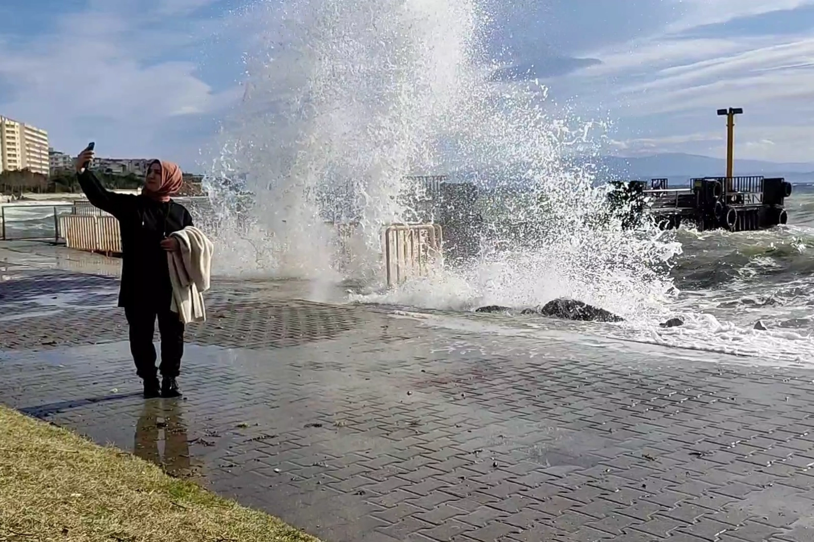 Yalova'da lodosun etkisiyle denizde oluşan dev dalgalar sahilde yürüyüş yapanları ıslattı. Sahilde yürüyüş yaparken ıslanan vatandaşlar ne yapacağını şaşırdı.