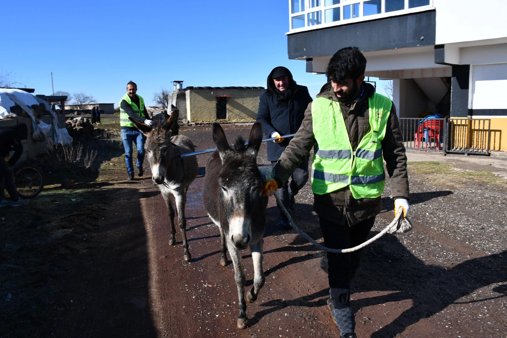 Şanlıurfa Siverek'te son günlerde başlayan kar yağışı ve etkili olan soğuk havalar nedeniyle ilçe kırsalında bulunan başıboş eşeklerin donmaması için Siverek Belediyesi çalışma başlattı. Belediye tarafından toplanan eşekler, rehabilitasyon merkezine götürülerek sıcak yuvaya kavuşturuluyor.