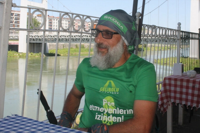 'Türkiye'yi dört etapta yürüyebilir miyim?' diye düşünerek çalışmalarımı yaptım. Yalova'dan başlayarak Artvin'e kadar birinci etabını yürümeye çalışıyorum. Yalova'dan İzmit, Düzce, Sakarya, Bolu, Zonguldak, Bartın, Karabük, Kastamonu ve Sinop'a geçtim, Samsun'a geldim. 16 gündür yürüyorum. Yürüyüşümün Artvin olan ilk etabını bitirmeyi planlıyorum.'
