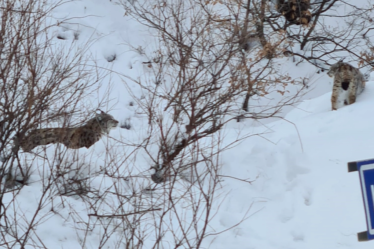 Nesli tükenme tehlikesi altında olduğu için dünyada birinci derece koruma altında bulunan 2 vaşak, Tunceli’nin Pülümür Vadisi’nde karayolundan karlı alana doğru giderken Yıldıran Yıldız isimli vatandaş tarafından görüntülendi. Tunceli’den Pülümür’e seyahat halindeyken vaşaklara denk geldiğini söyleyen Yıldız, “Bu güzel görüntüyü Pülümür Vadisi'nde çekme fırsatı buldum. Aracımla Pülümür’e seyahat ederken bu güzel hayvanları yolun kenarında gördüm.