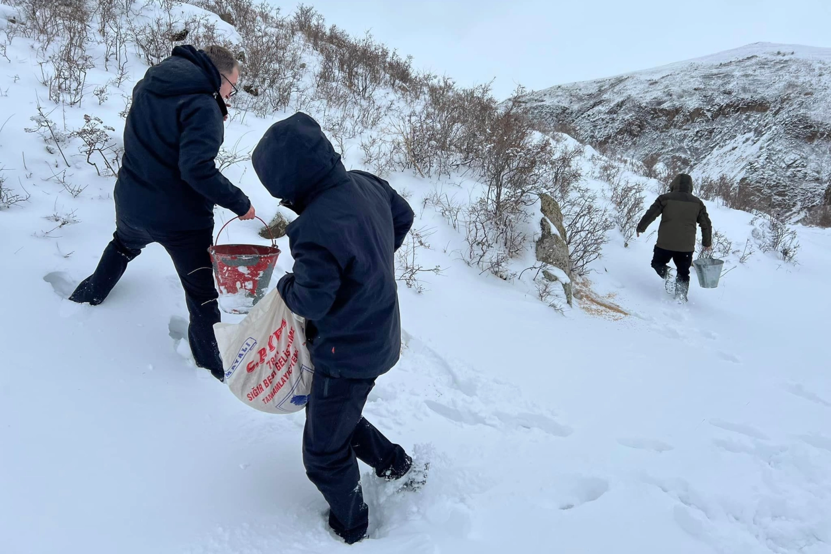 Kars Doğa Koruma Milli Parklar (DKMP) İl Müdürlüğü ekipleri, yaban hayvanlarının kış şartlarından olumsuz etkilenmemesi için doğaya yem bıraktı.