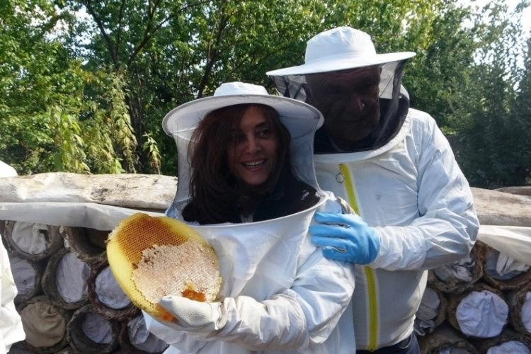 Yıllardır Van'da karakovan balı üreten Ömer Akbulak'ın bahçesinde organik balı hem tatma hem de yerinde görme imkanı bulan yerli turistler, arıcı kıyafeti giyip kovanların bulunduğu alanda bal hasadı yaptı.