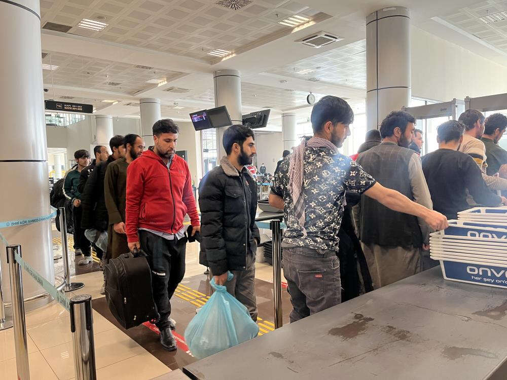 Sınır dışı işlemlerinin ardından uçağa alınan göçmenler, Ariana Afgan Havayollarının tarifesiz seferiyle ülkelerine gönderildi.