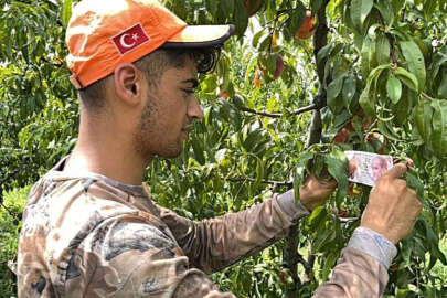 Bursa'da ağaçtan kopardığı şeftali için dala iple 10 TL asan kişi tarla sahibini hayrete düşürdü.