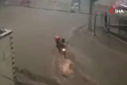 Ankara’da bir motosiklet sürücüsü, sağanak yağışın ardından oluşan sele kapılarak sürüklendi. Sürücünün sele kapılma anı vatandaşların cep telefonu kamerası tarafından görüntülendi.