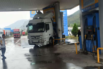 Kamyona çarpmamak için akaryakıt istasyonuna çarptı
