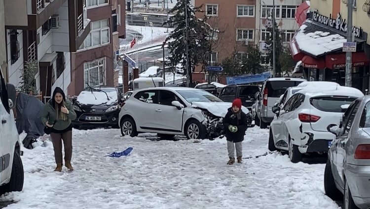 Turuncu alarmın verildiği İstanbul'da 3 gün boyunca etkili olan şiddetli kar yağışı kazaları da beraberinde getirmişti. Geçtiğimiz Cumartesi günü saat 20.30 sıralarında meydana gelen olayda, yağışa hazırlıksız yakalanan 34 EEK 118 plakalı otomobilin sürücüsü, dik bir yokuştan aşağıya inmek istedi.