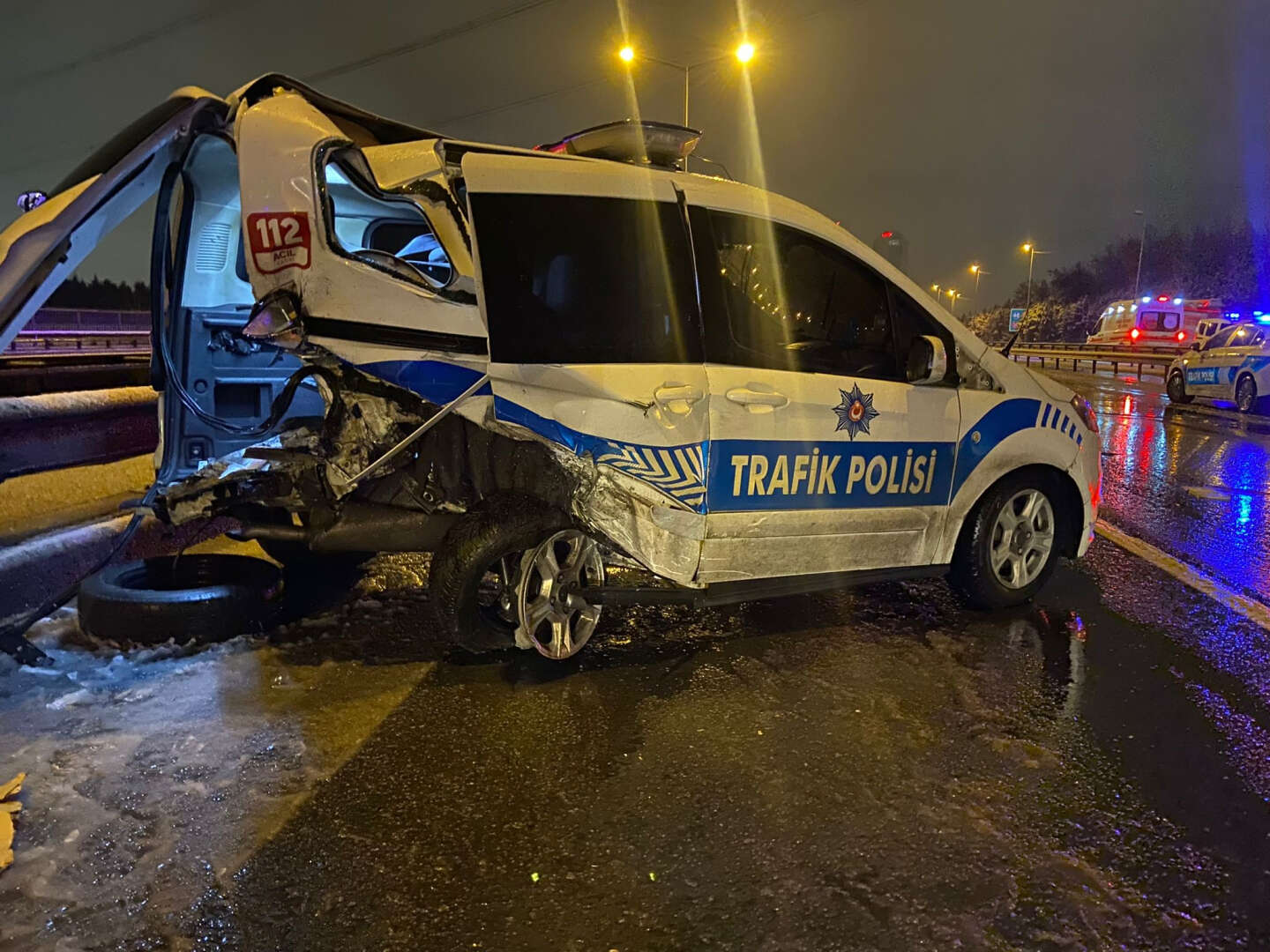 Kaza sonrası polis aracına arkadan çarpan otomobil, bariyerlere çarparak dururken otomobil sürücüsü Berivan Y. yolun karşısına geçerek taksiyle kaçtı. Otomobilde bulunan başka bir kadın ise gözaltına alındı.