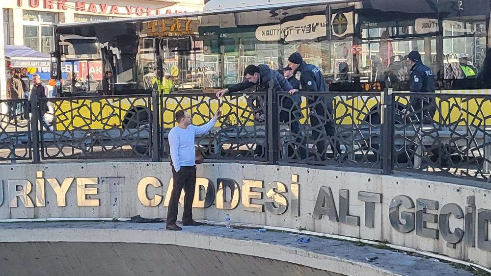 Olay yerine çok sayıda polis, ambulans ve itfaiye ekibi sevk edilirken, tedbir amaçlı brandalar açıldı, alt geçit trafiğe kapatıldı. Şahıs polis ekiplerinden ve çevredekilerden sosyal medyada canlı yayın yapabilmek için telefon da istedi. Yaklaşık 3 saat süren ikna çabalarının ardından itfaiye ekipleri merdivenle Ukraynalı şahsa yaklaşmayı denedi. İkna çalışmaları devam ettiği sırada ekipler, şahsa müdahale ederek güçlükle korkulukların diğer tarafına aldı.