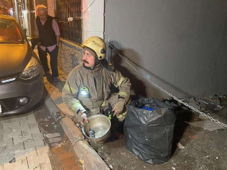 İtfaiye eri evde bulduğu tencerenin içine 6 kedi yavrusunu koyarak yangından kurtardı. Tencerenin içinden bir kutuya yerleştirilen 6 yavrunun da durumunun iyi olduğu görüldü. Polis ekipleri ise yalın ayak yangından kurtarılan yaşlı kadına, ayakları üşümesin diye terlik giydirdi.