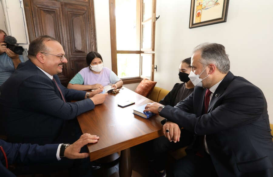Başkan Aktaş ve Vali Canbolat, konuşmaların ardından projeye sundukları katkı nedeniyle Bursa İçmimarlar Odası Başkanı Nur Gül Arslan'a teşekkür plaketi verdi. Açılış kurdelesinin kesilmesinin ardından Vali Canbolat, Başkan Aktaş ve protokol üyeleri, tarihi binayı gezip, içeride ders çalışan çocuklarla sohbet etti.