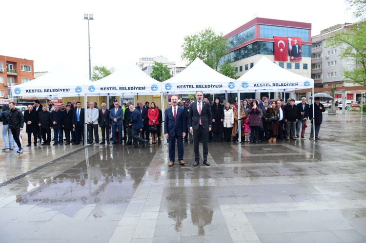 23 Nisan Ulusal Egemenlik ve Çocuk Bayramı kutlamaları, Kestel’de protokol üyelerinin katılımıyla gerçekleştirilen çelenk sunma töreniyle başladı. Meydan Kestel’de düzenlenen törende Atatürk Anıtı’na çelenk sunuldu.