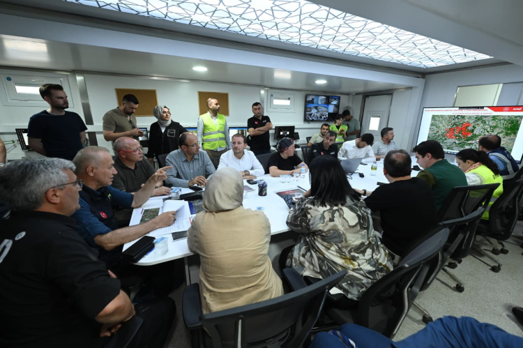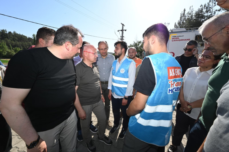 Herkesi tek tek dinleyen AK Parti Bursa İl Başkanı Davut Gürkan, "Sadece dün sahada 36 hava aracı, 3 bin personel ve yaklaşık bine yakın ağır taşıt çalışmalarda aktif görev aldı" dedi.