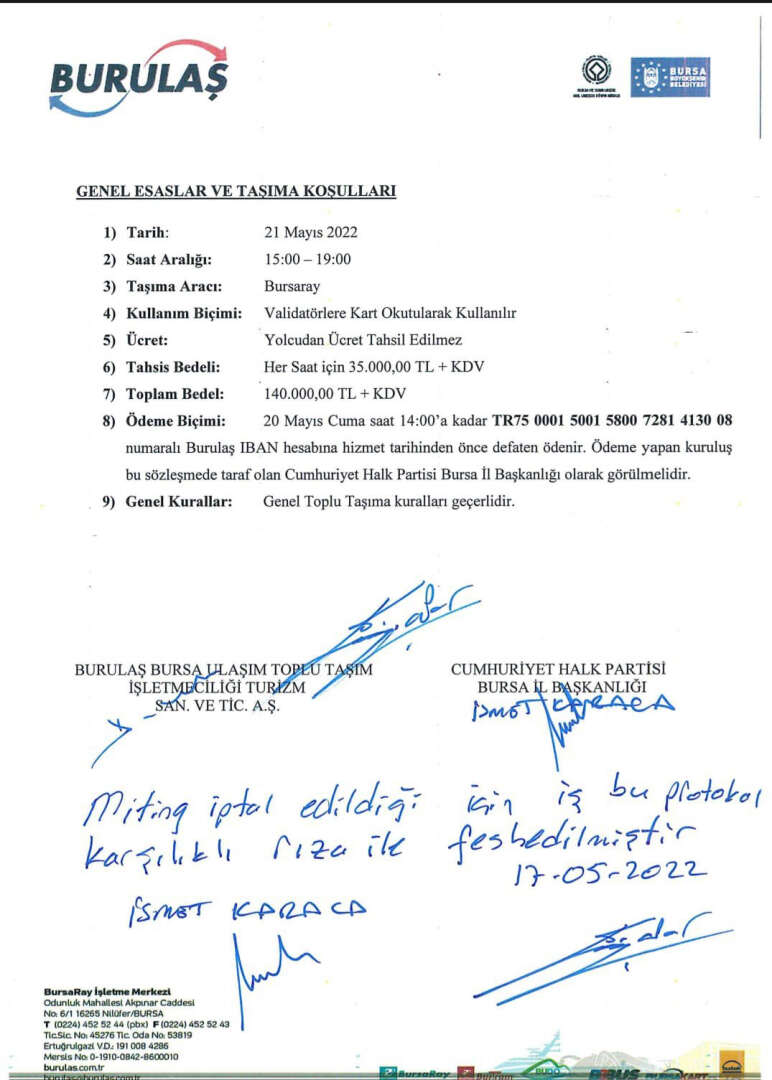 "Siyasi polemiklerinize kurumumuzu ve kuruluşlarımızı konu edinerek taraftar toplamayı düşünüyorsanız bunun yanlış bir yöntem olduğunu hatırlatmakta fayda görüyorum. Sayın Kılıçdaroğlu’nun seçim öncesi planlanan ve daha sonra iptal edilen etkinliğinde, benzer bir talepte bulunduğunu ve her türlü maliyet artışına rağmen önceki birim fiyatlarla bu hizmeti vermek üzere BURULAŞ ile karşılıklı protokol imzaladığını ‘o görüşmede bulunan biri olarak’ unutmuş olamazsınız! Sizi, etik değerler çerçevesinde ve gerçekleri çarpıtmadan siyaset yapmaya davet ediyorum."