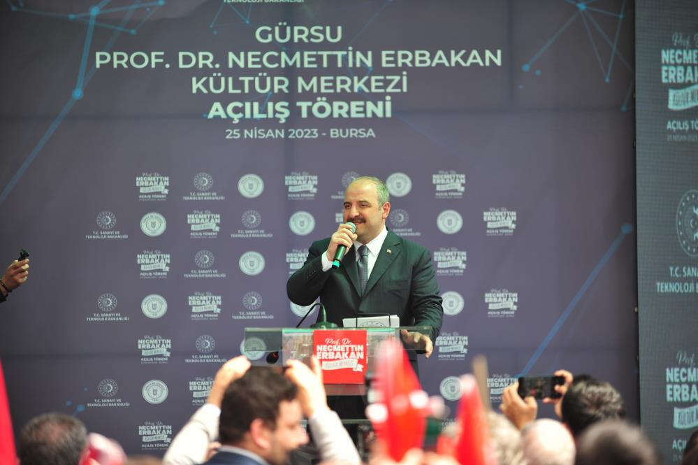 Necmettin Erbakan Kültür Merkezi’nin adının öneminden bahseden Bakan Varank, “Merhum Prof. Dr. Necmettin Erbakan, çok vizyoner bir insandı. Dava adamı bir insandı. Bugün bu açılışı yaparken Ankara'da ne oldu biliyor musunuz? Erbakan Hocamızın hep hayali olan, Türkiye ilk defa kendi jet motorlu uçağını bugün uçurdu. Türkiye'nin otomobilini yapmak Erbakan Hocamızın hayaliydi. İşte Togg'u biz gerçekleştirdik. Türkiye'nin tankını yapmak Erbakan Hocamızın hayaliydi. Altay tankını ordumuza teslim ettik. Türkiye'nin uçağını yapmak Erbakan Hocamızın hayaliydi. İşte bugün jet motorlu uçağımızı uçurduk. Biz bu ülkeyi kalkındırmanın, bu ülkeyi kendi ayakları üzerinde tutmanın yolu nereden geçtiğini gayet iyi biliyoruz. İnşallah yolumuzu aynı gayretle devam edeceğiz. Bu cahil muhalefetin ne dediğine de aldırmayacağız. Bu muhalefettekiler o kadar cahil ki. Ne üretimden anlarlar, ne sanayiden anlarlar, ne kalkınmadan anlarlar. Bunların yatırımdan anladığı heykelle musluk açmak. Şimdi o arkadaşlar o kadar Türkiye'den bihaberler ki, ‘Türkiye'nin otomobili İtalya'dan geliyor’ diyorlar değil mi?