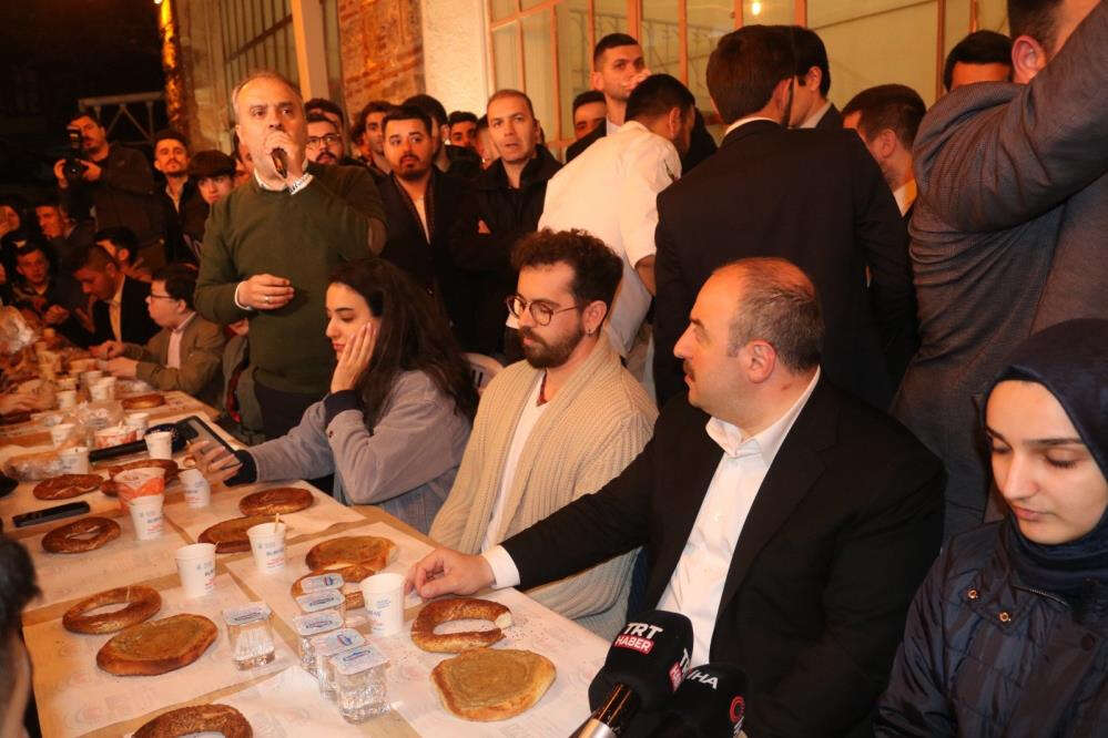Sanayi Teknoloji Bakanı ve AK Parti Bursa 2'nci bölge adayı Mustafa Varank, makam aracı olan Togg ile tarihi Abdal Meydanı'nda gelerek Bursalı gençlerle sahur yaptı.