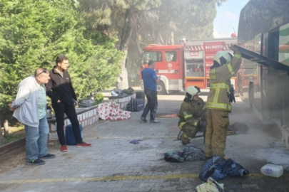 Balıkesir'in Susurluk ilçesinde alev alan yolcu otobüsündeki yangın itfaiye ekiplerinin müdahalesi sonucu kısa sürede kontrol altına alınarak söndürüldü.