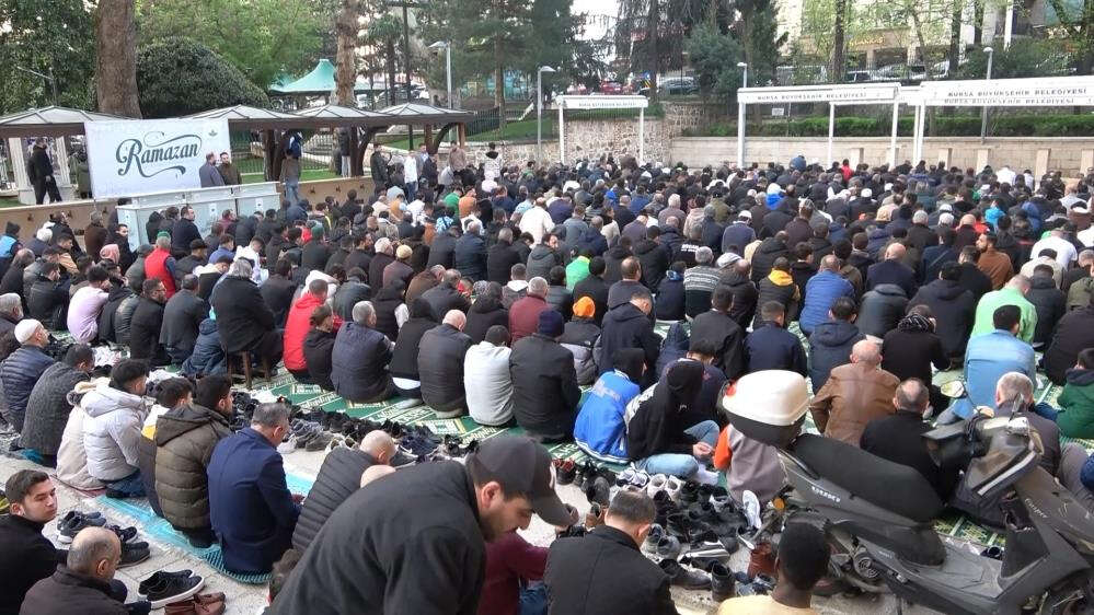 Bursa'da bayram namazı kılmak isteyen vatandaşlar tarihi Ulu Camii’ne koştu. On binlerce kişi namazdan önce caminin içi dolarken, içeriye giremeyen vatandaşlar yanlarında getirdikleri seccadeleriyle avluda bayram namazını kıldı.