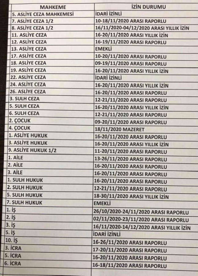 Çok sayıda adliye personelinde pozitif vaka görülmesi üzerine adliyede de işler durma noktasına geldi. Çok sayıda mahkeme, personelinin idari izinli veya raporlu olması nedeniyle görev yapamıyor.