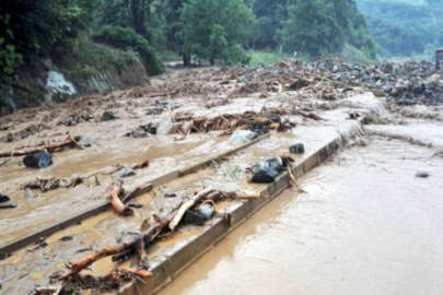 Bursa'da akşam saatlerinde hızını arttıran yağmurun oluşturduğu sel suları Dikkaldırım Karaağaç mevkiindeki ağaçları sürükleyerek Karaoğlan Deresi'ne taşıdı.