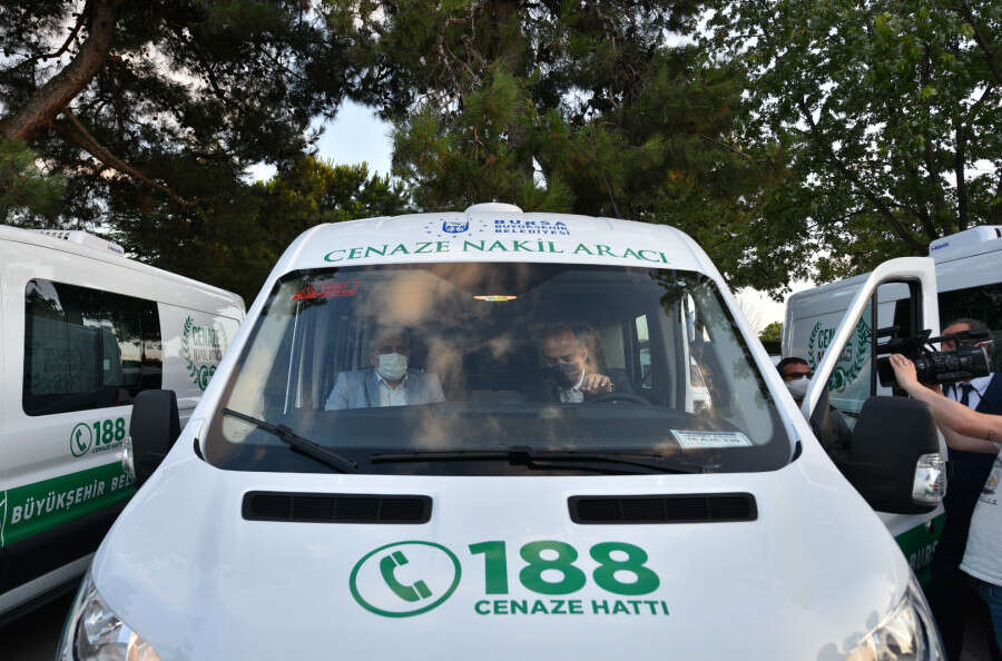 Vatandaşların en acılı günlerinde evrak peşinde koşturmadan bir telefonla tek merkezden hizmet almalarını sağlayan Bursa Büyükşehir Belediyesi, 15 cenaze nakil aracını yeniledi. Günde 45, yılda ise yaklaşık 16 bin cenaze yıkama ve defin işlemi gerçekleştiren Büyükşehir Belediyesi, THY ile yaptığı protokol kapsamında şehir dışı cenaze nakil hizmetleriyle de vatandaşların omuzlarından önemli bir yükü almaya devam ediyor.