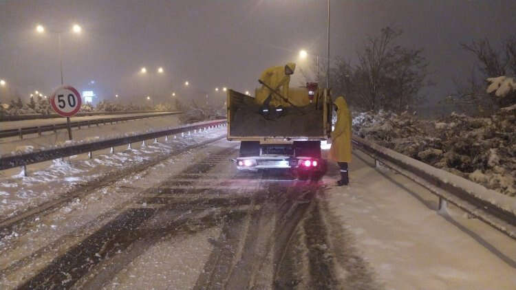 Kış lastiği ve zincir kullanmadan seyreden bazı araçların neden olduğu aksamalar dışında trafikte önemli bir sorun yaşanmazken, sadece son iki gündeki çalışmalarda yaklaşık 5 bin ton tuz kullanıldı.