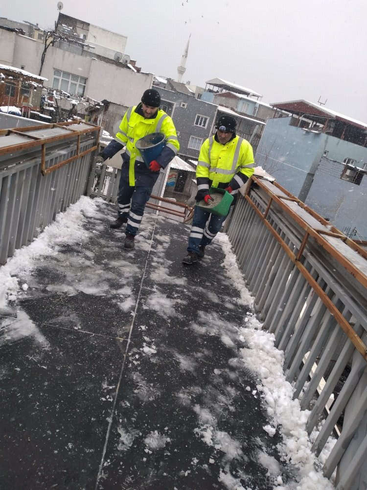 Öte yandan yapılan çalışmalarla ilk genelinde trafik akışında önemli bir sorun yaşanmazken, Büyükşehir Belediyesi ekipleri yaya hareketliliğinin yoğun olduğu alt ve üst geçitler ile meydanlarda kar temizliği ve tuzlama çalışması gerçekleştiriyor. Çalışmalar kapsamında 6 gündüz ve 4 gece ekibi olmak üzere toplam 45 kişi, yayalara özel kar temizliği mücadelesini kesintisiz sürdürüyor.
