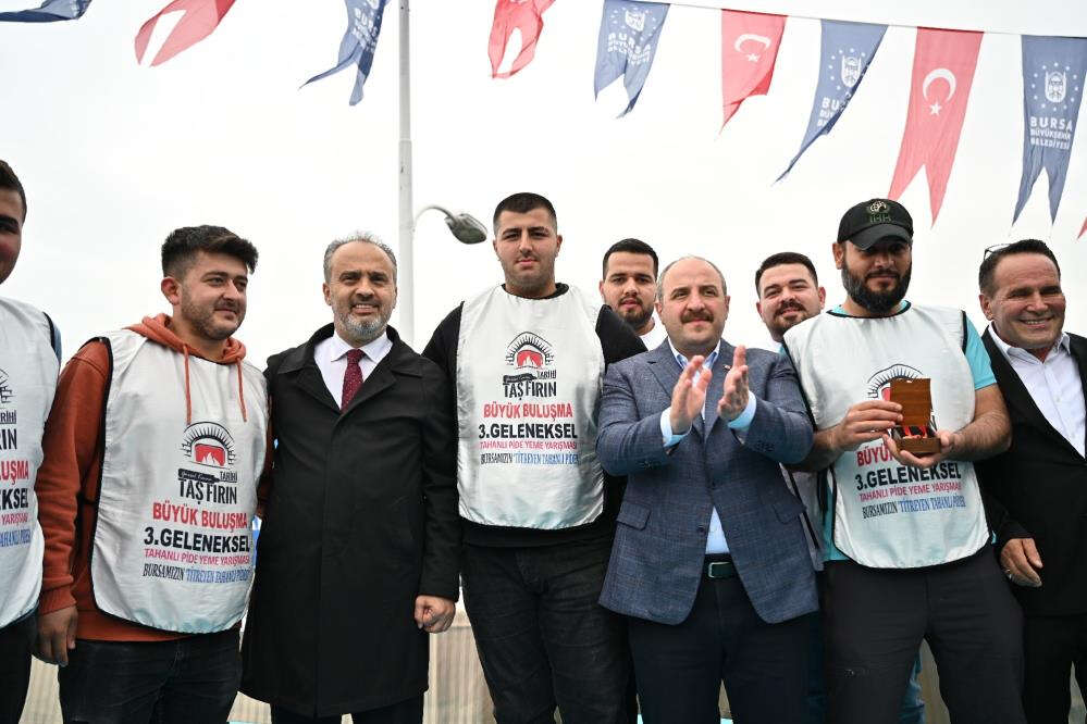 Buluşmanın en heyecanlı bölümlerinden biri de Tarihi Taş Fırın tarafından yapılan Tahanlı Pide Yeme Yarışması oldu. Bu yıl üçüncüsü yapılan ve 16 yarışmacının kabul edildiği yarışmayı Bakan Varank ve Başkan Aktaş da izledi. Büyük Bursa buluşmasında Bursa’ya özgü lezzetleri de öne çıkarmaya çalıştıklarını belirten Bakan Varank, “Bursa’nın kültürünü yaşatmak, Türkiye'ye tanıtmak, burayı önemli bir destinasyon haline getirmek için inşallah önümüzdeki dönemde daha farklı etkinlikleri hep birlikte gerçekleştireceğiz. Bugün şu soğuk havaya rağmen gelip bizlerle bu coşkuyu yaşadığınız için sizlere çok teşekkür ediyorum. Bütün yarışmacılarımıza da başarılar diliyorum” dedi.