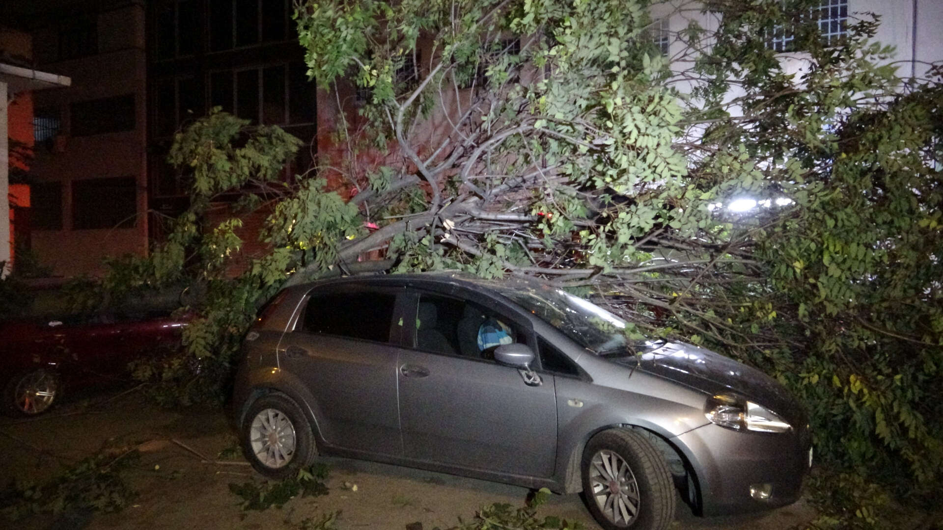 Seslere uyanan mahalle sakinleri gördükleri karşısında şaşkına dönerken durumu hemen itfaiye ve polis ekiplerine bildirdi. Olay yerine gelen ekipler ağacın altında kalan otomobilleri kurtardı.